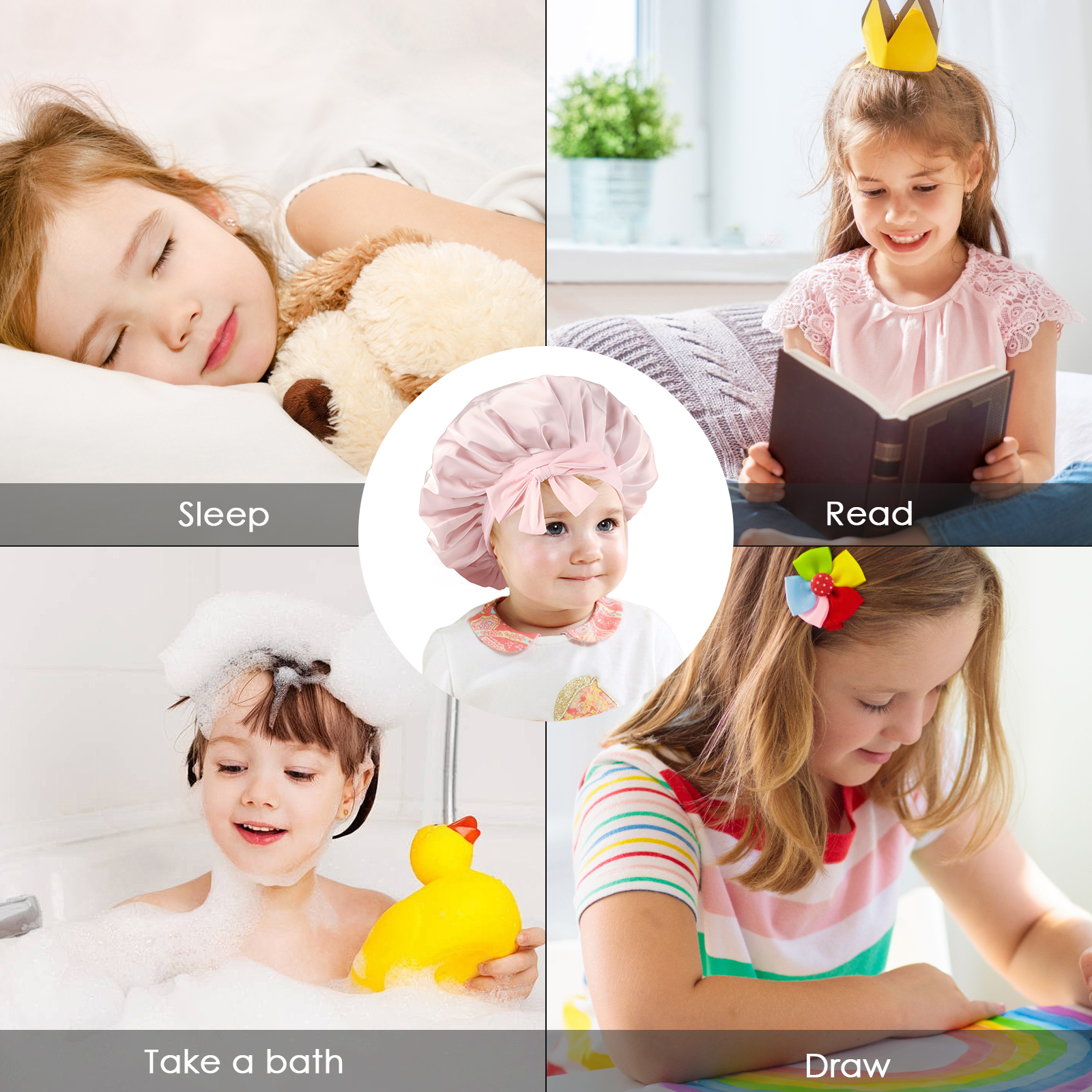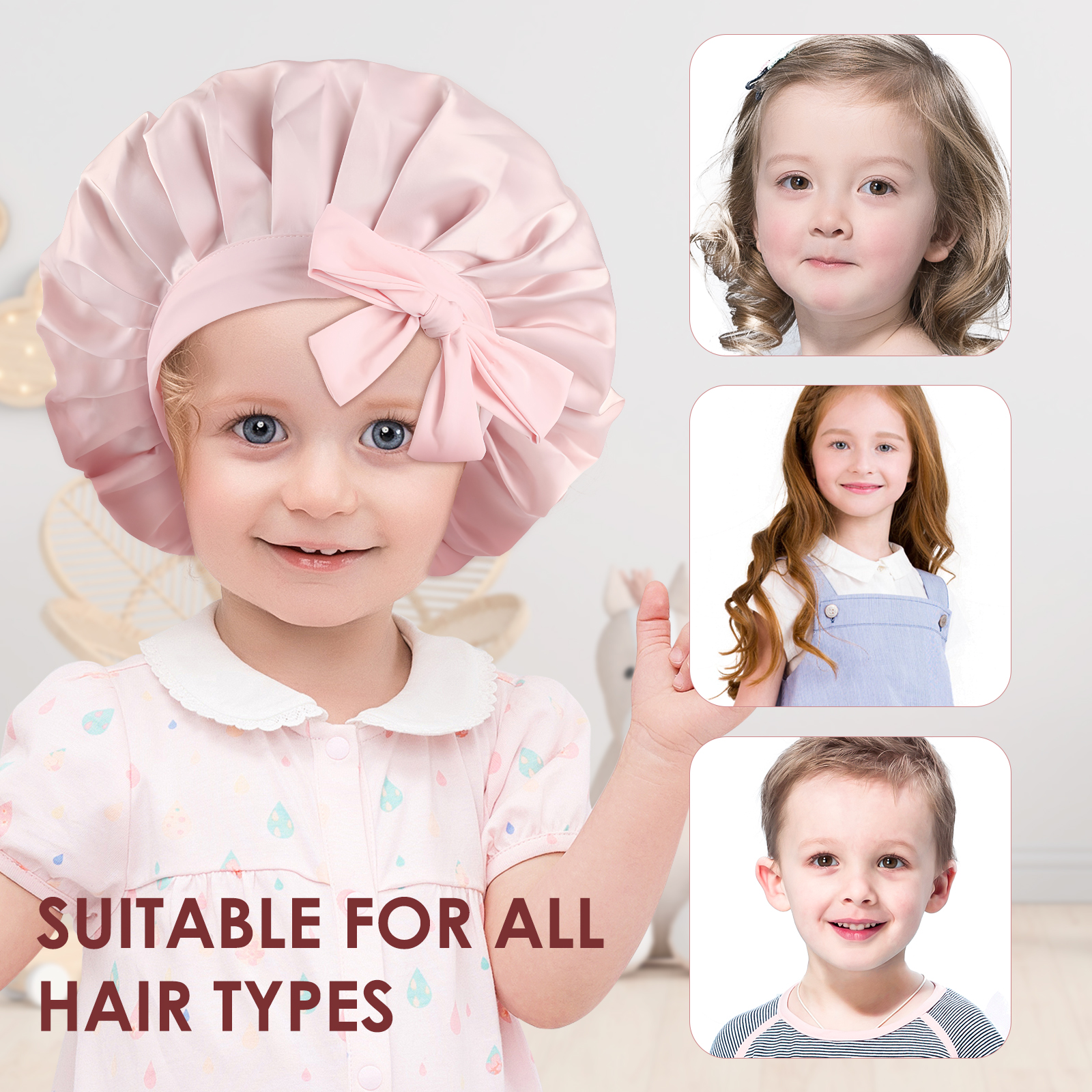 Hair satin bonnet can protect the hair, prevent kid’s hair from being tangled while sleeping.