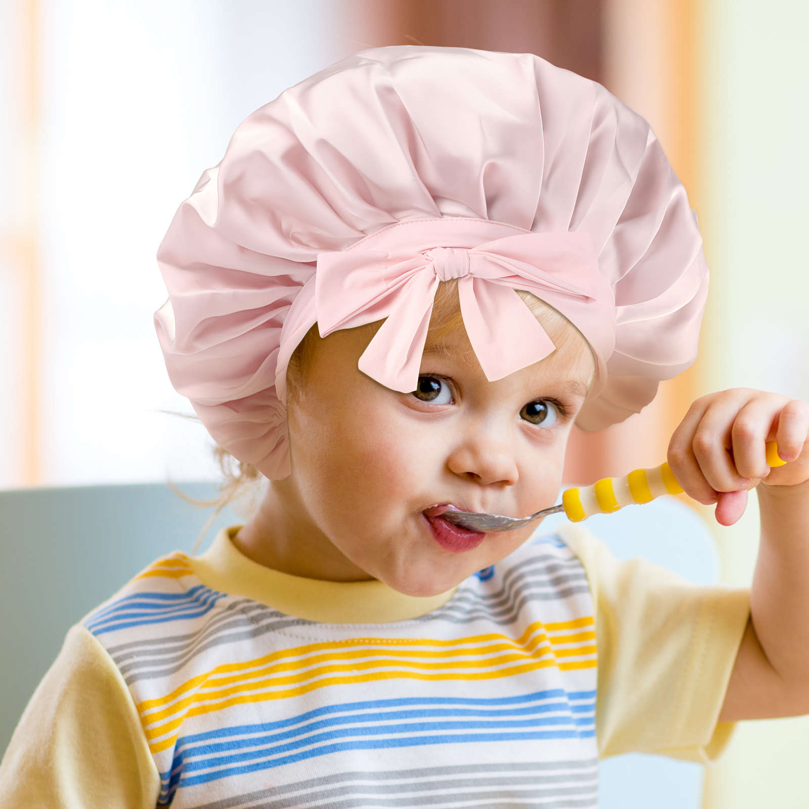 Kids bonnet suitable for daily wear, such as bathing, washing, painting, eating, doing sports, etc.