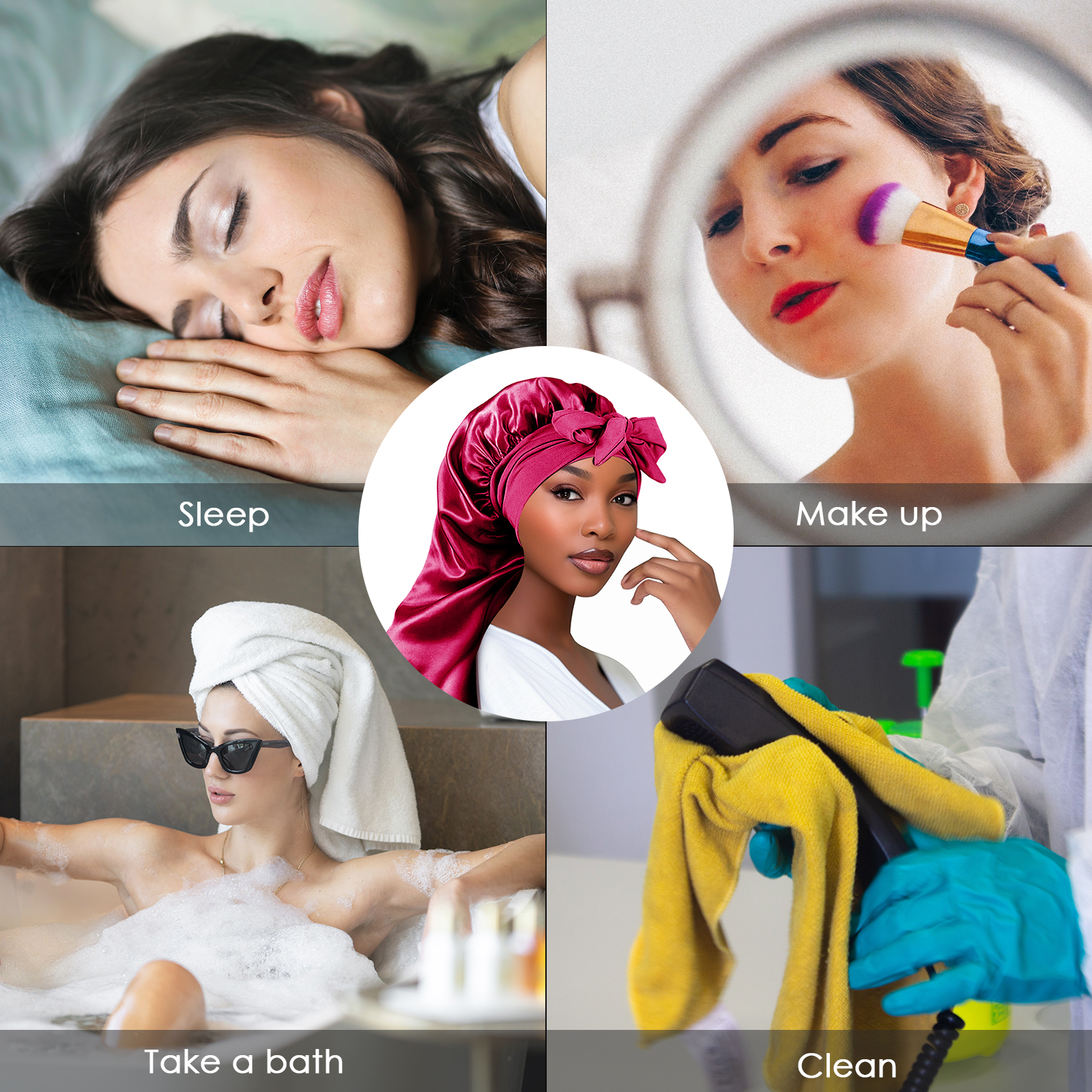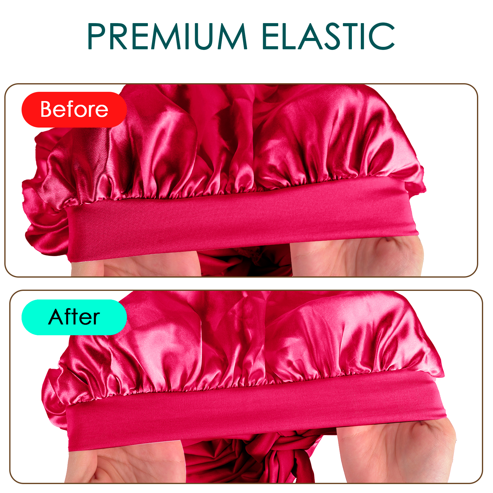 Extra Long Satin Bonnet for Women, Adjustable Braid Bonnet with Tie Band, Double Layer Elastic Silk Bonnet for Braids Hair Sleeping Cap (Rose Red)Extra Long Satin Bonnet for Women, Adjustable Braid Bonnet with Tie Band, Double Layer Elastic Silk Bonnet for Braids Hair Sleeping Cap (Rose Red)