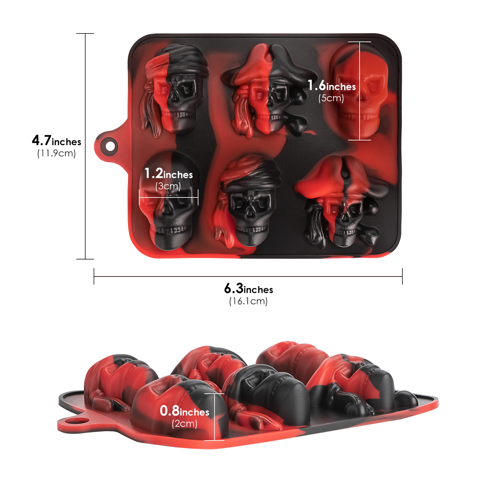 Pack Pirate Skull Ice Cube Mold, Silicone Ice Cube Tray for Halloween, Reusable Ice Makers for Whiskey, Cocktails and Drinks (Black Red)