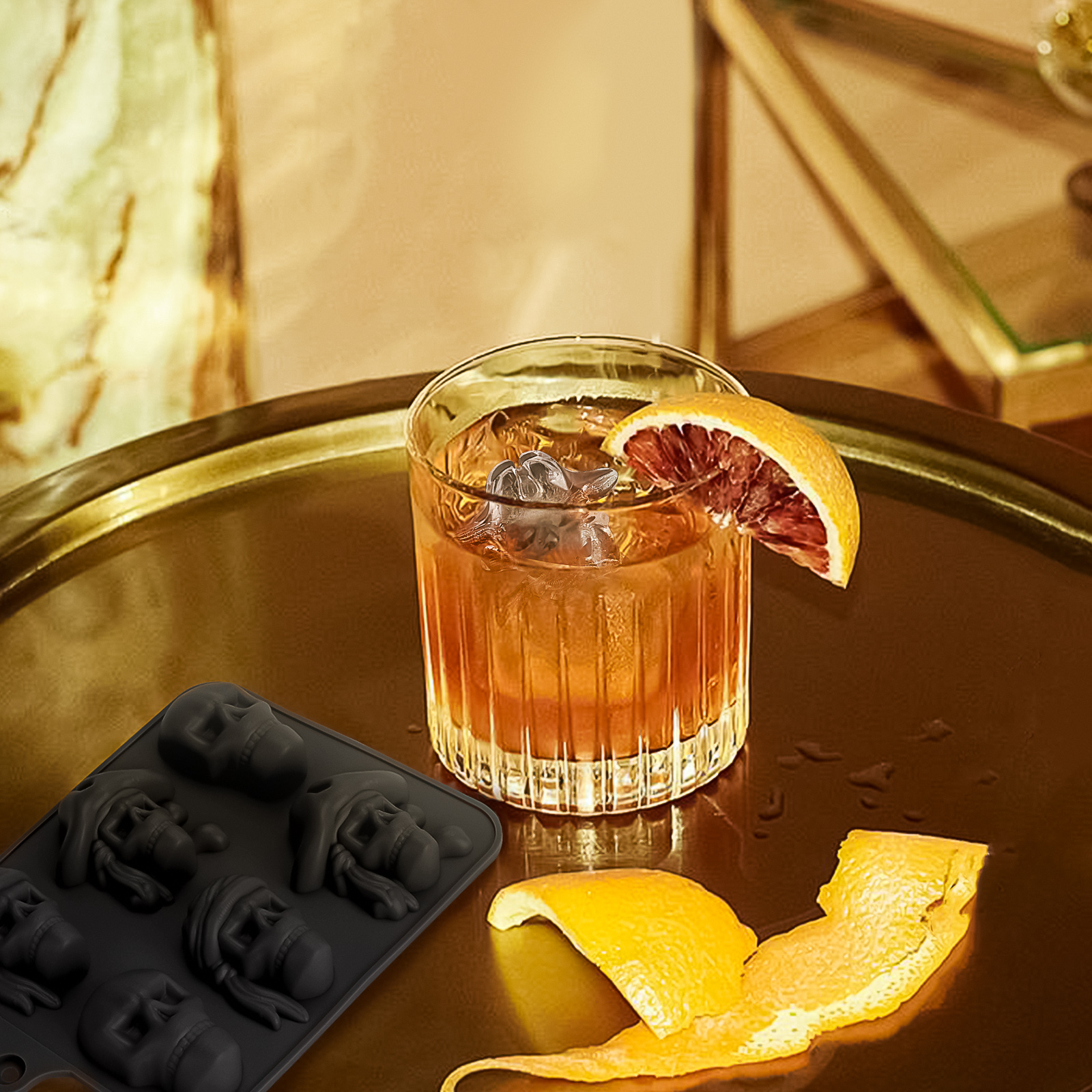 Skull ice mold made of silicone, soft and flexible, taking ice simply and easy to clean.