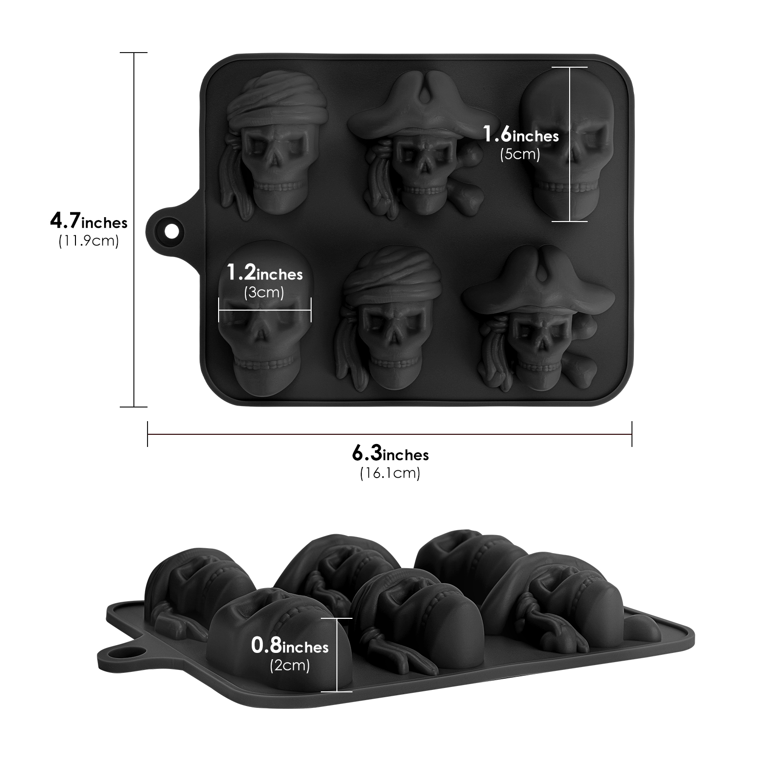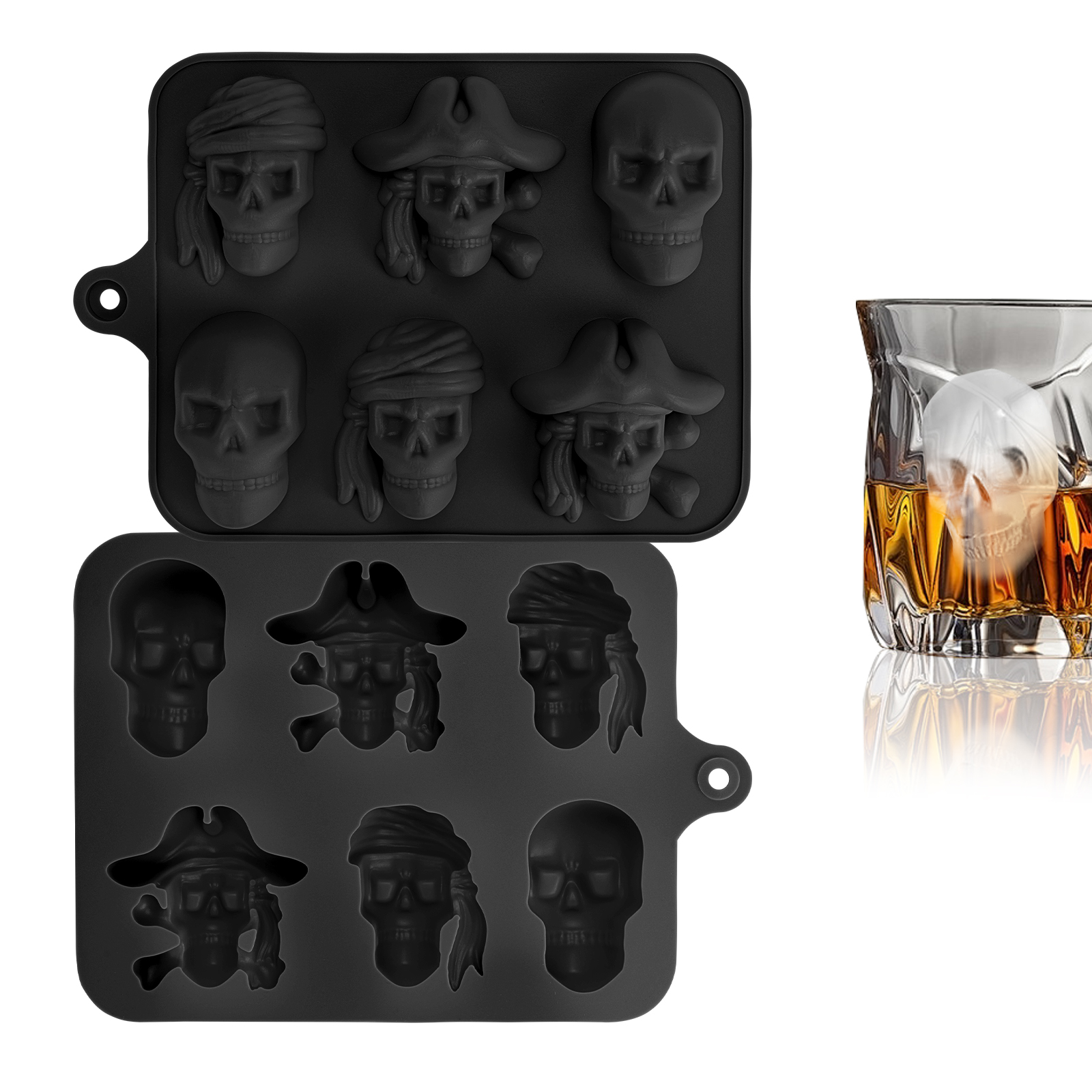Pack Pirate Skull Ice Cube Mold, Silicone Ice Cube Tray for Halloween, Reusable Ice Makers for Whiskey, Cocktails and Drinks (Black)