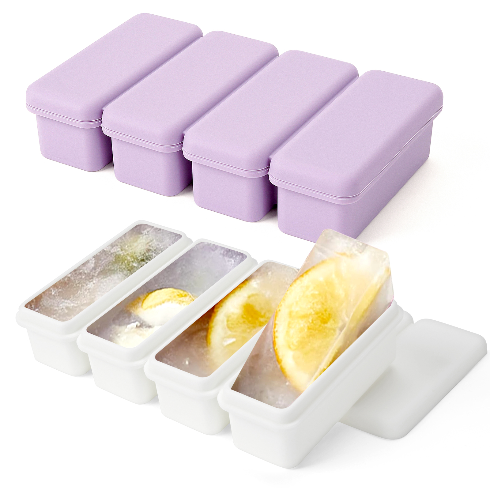 Pack Silicone Ice Cube Trays, Ice Cube Molds with Removable Lid, Ice Cube Maker for Freezer, Juice, Whiskey, Cocktail, Ice Soup (White, Purple)