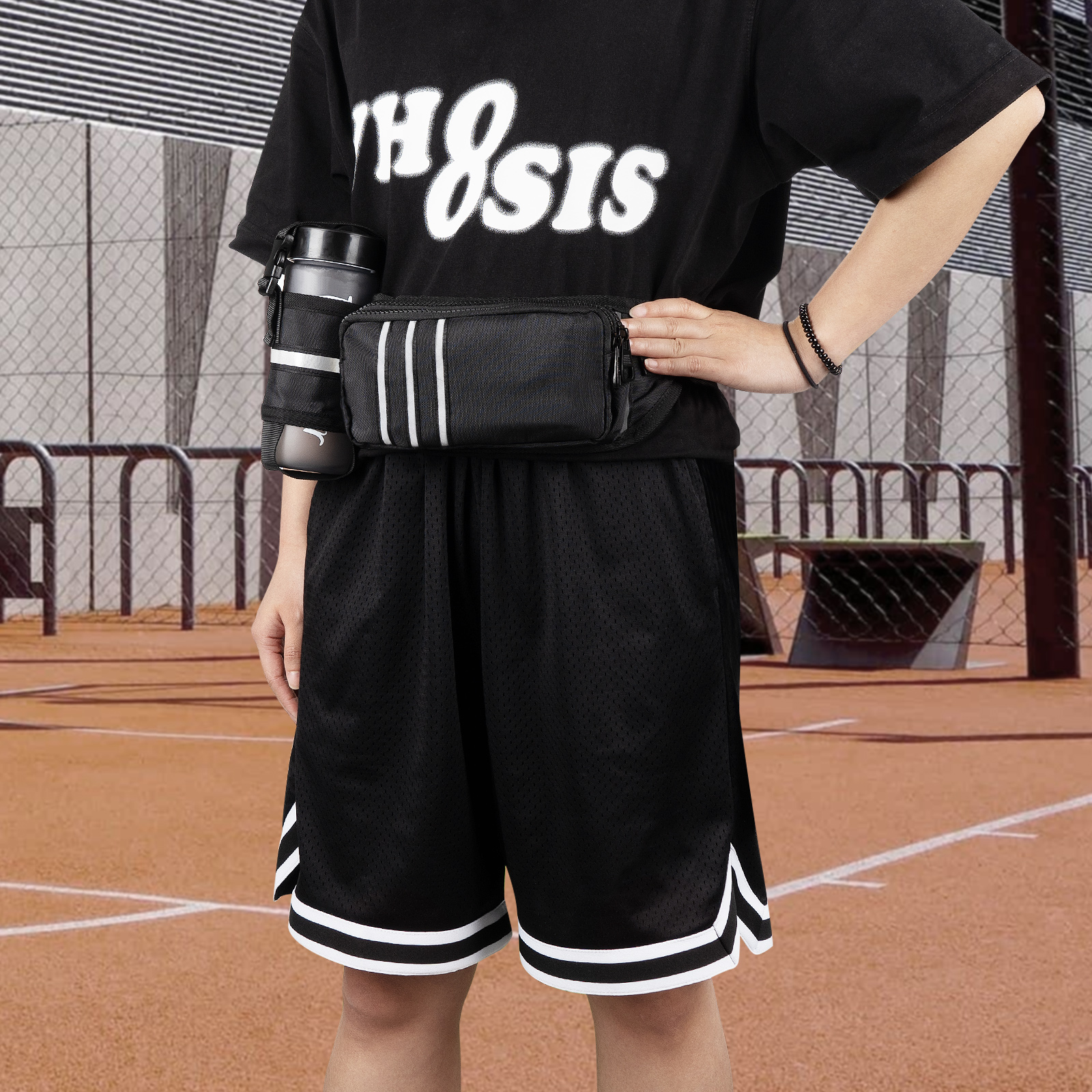 Black fanny pack only, others are not included.