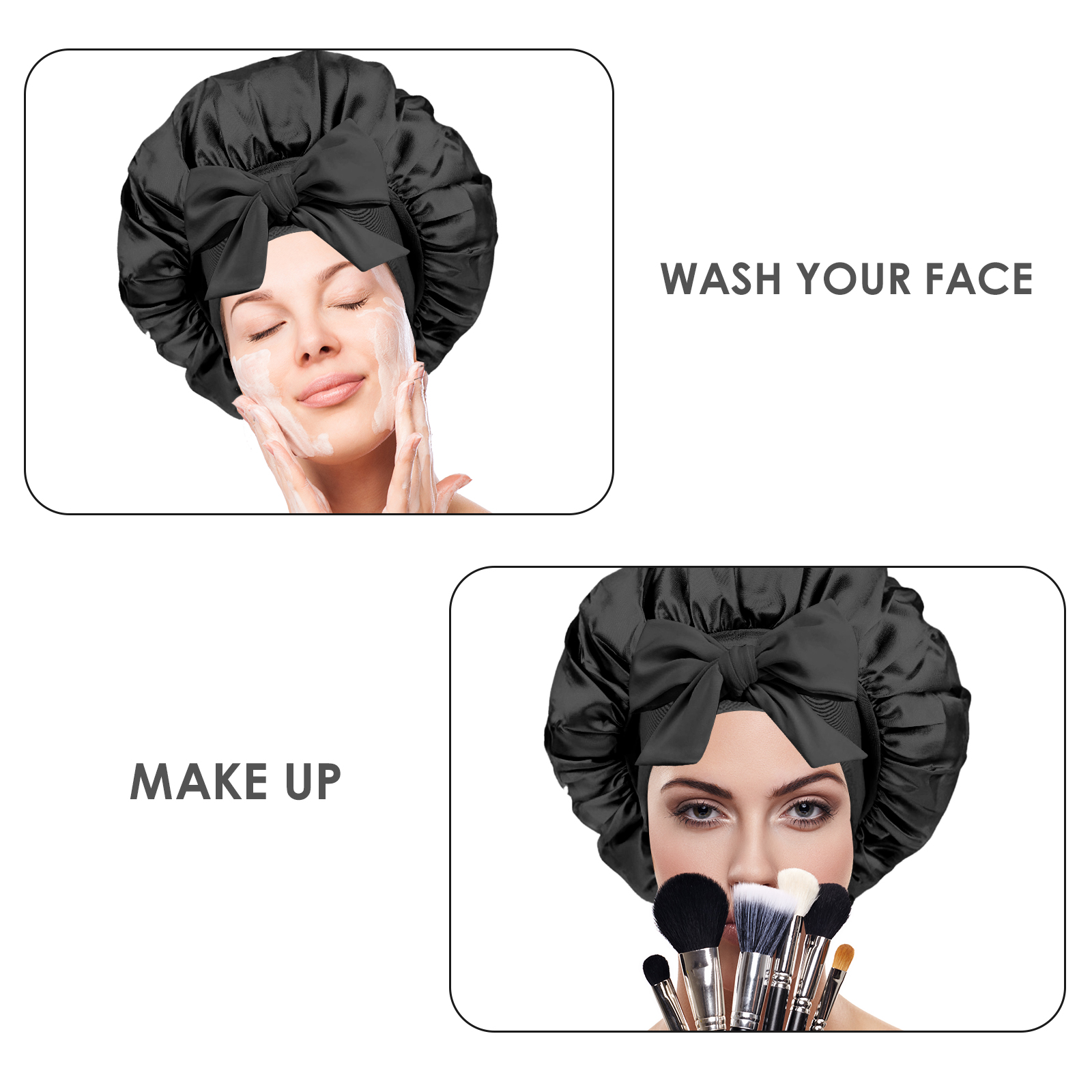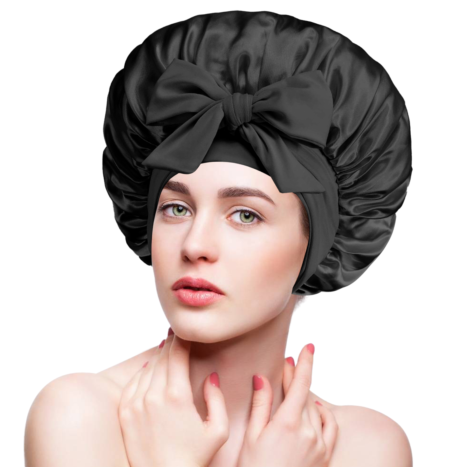 Silk bonnet with tie band suitable for daily wear, such as washing face, skincare, makeup, bathing, doing housework, gym, running, yoga, etc.