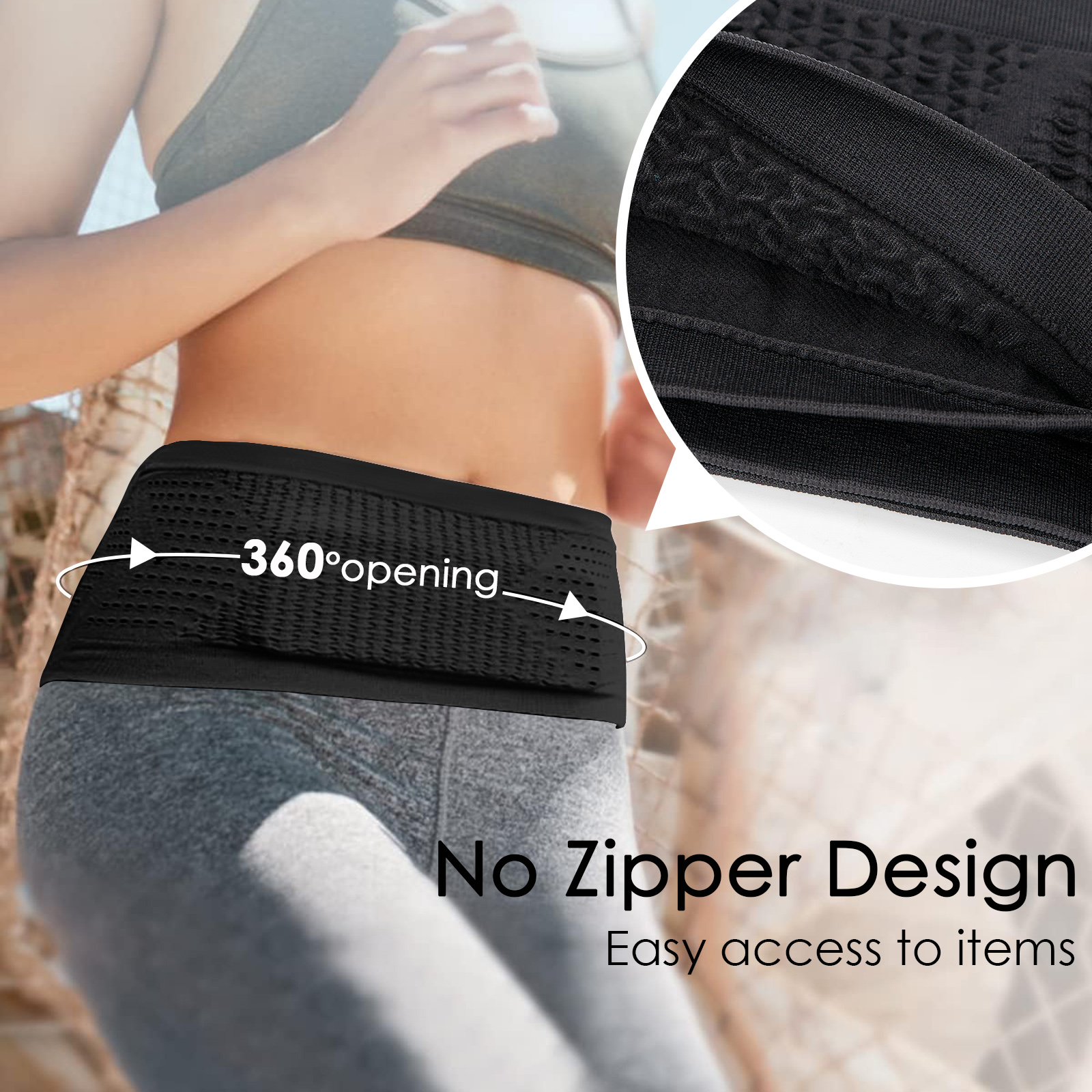 – Running belt has 4 pockets without zippers, a large opening for easy to access.