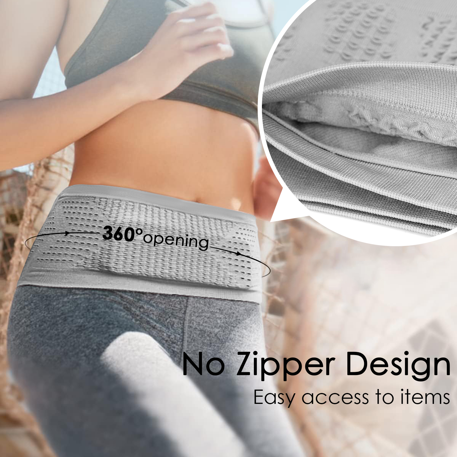 – Running belt has 4 pockets without zippers, a large opening for easy to access.