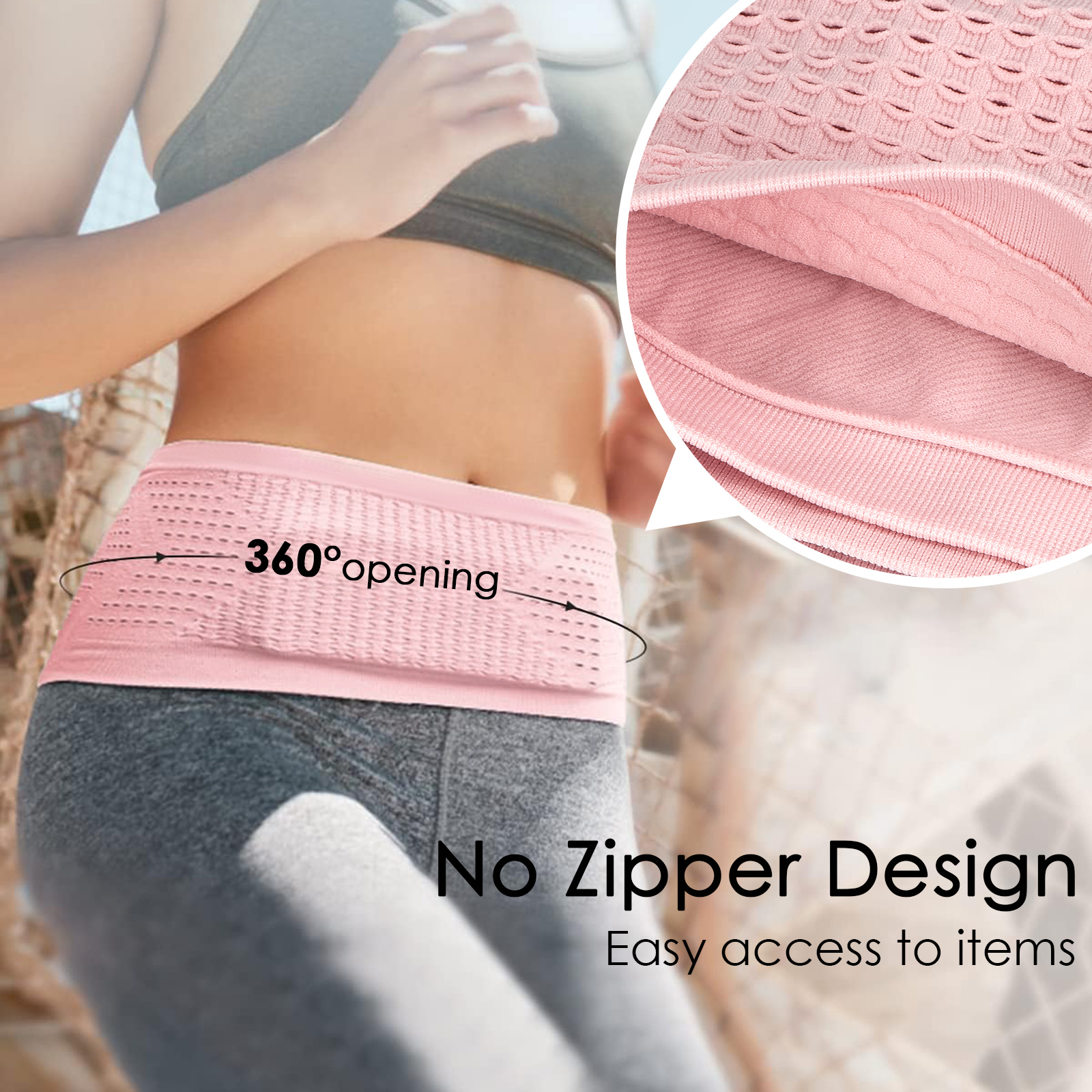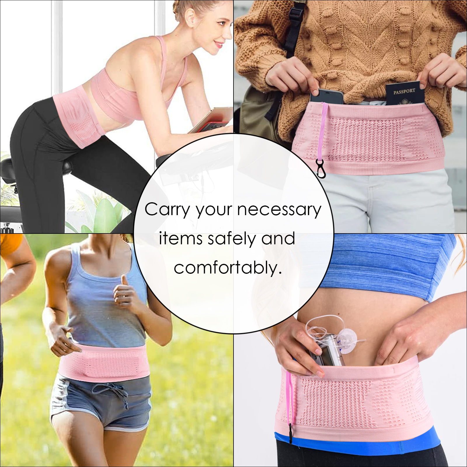 Slim Running Belt, Running Belt Fanny Pack for Men Women, Travel Running Waist Belt for Money and Passport (Pink, X-Large)